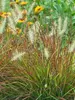 Pennisetum are prized for their arching multitude of bottle-brush seed plumes over tidy cascading foliage. Showy and easy to grow; they are lovely alone, in groups and in containers. The slightest breeze produces movement. Great for drying. Good for hot dry spots. Not prone to reseeding. Ornamental grasses are restricted in Oregon.